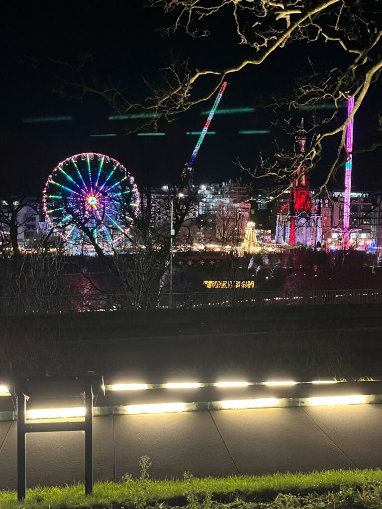 Si viajas a Edimburgo en Navidad, el mercado navideño de Princes Street es una parada casi obligatoria. Luces, ambiente, música y el típico plan de “vamos a dar una vuelta y al final nos quedamos más de la cuenta”. Incluso aunque no compres nada, solo pasear por ahí ya merece la pena.